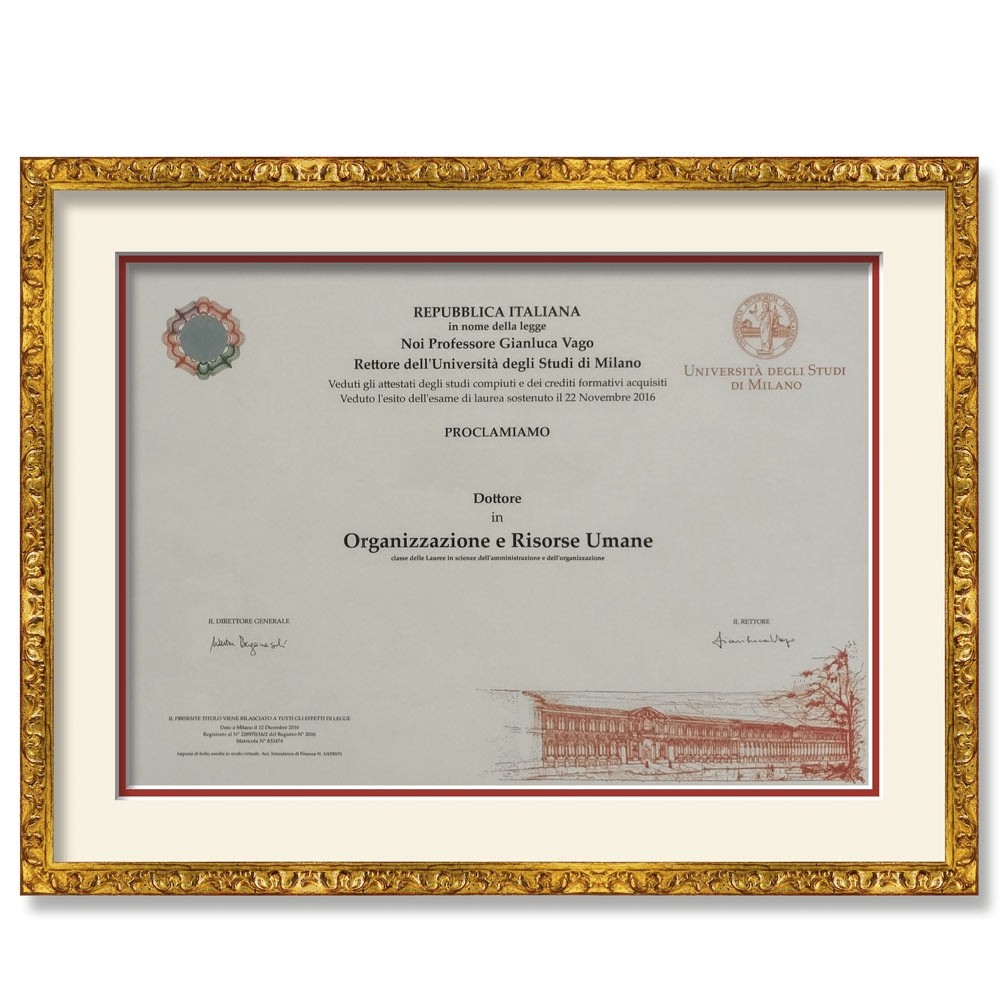 Cornice in stile settecentesco, adatta ad enfatizzare il diploma incornicato.